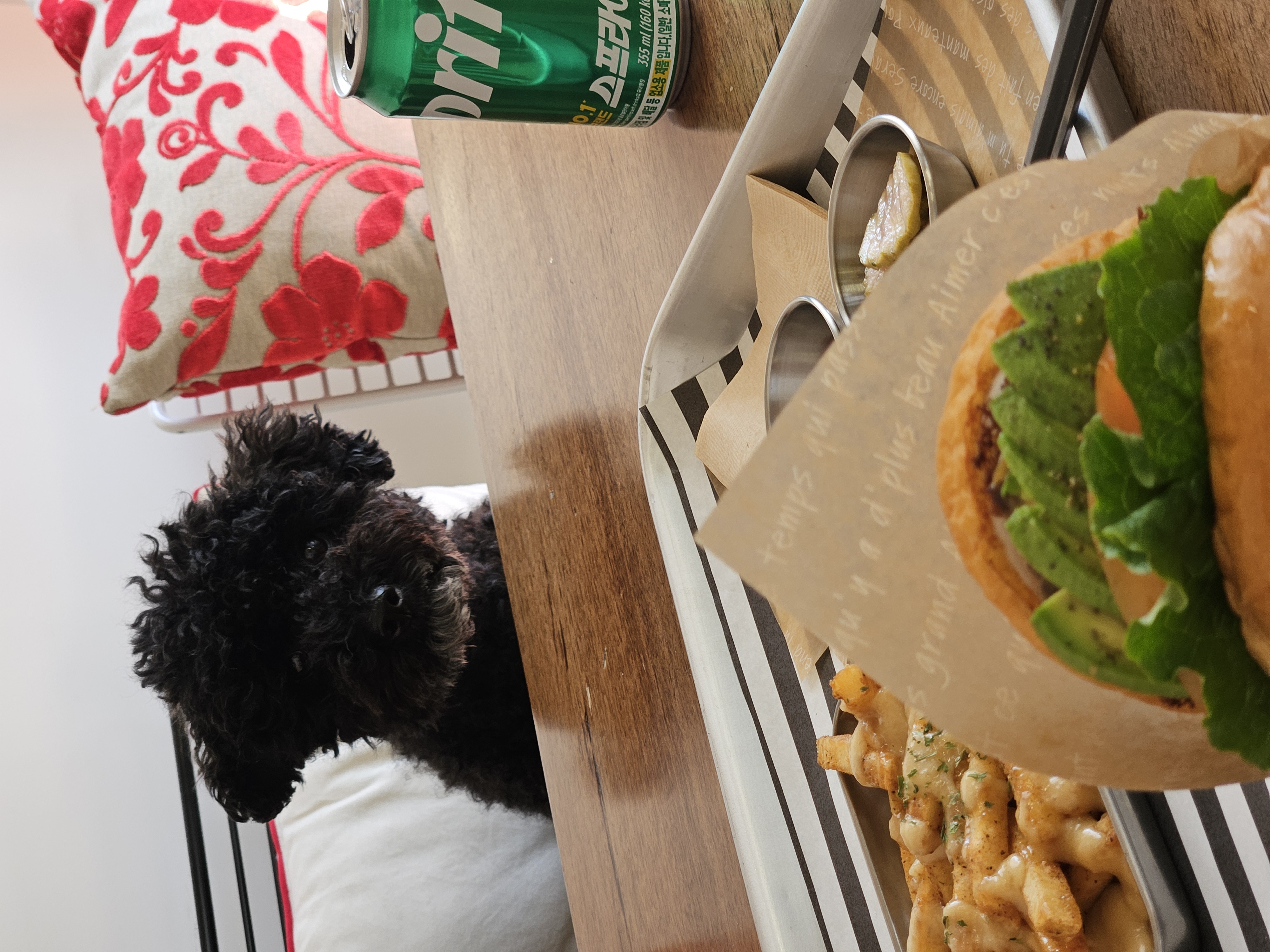 📍 1층 외부에도 식사 가능하고, 1층 입구에 낮게 출입구를 막을 수 있는 가림막이 있어서 강아지 를 내려놓고 있을 수 있는 듯 보였다.